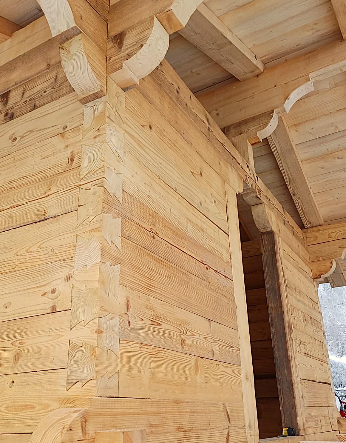 "Je réalise mes mazots de A à Z, depuis l'abattage des arbres jusqu'au montage et à la taille des pièces de bois. Chacune de ces étapes se fait sur mon site de production dans le Val d'Arly à 1300 m d'altitude"